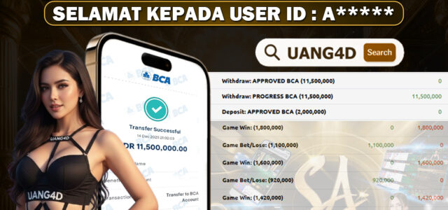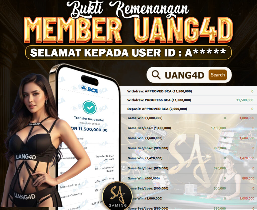 Setiap hari, member UANG4D berhasil meraih jackpot besar dari berbagai macam permainan livecasino ternama yang kami sediakan, seperti Roullete, Dragon & Tiger, Qiu Qiu dan masih banyak lagi. Kami secara rutin menampilkan bukti screenshot atau rekapan kemenangan yang berhasil diraih, mulai dari kemenangan ratusan ribu hingga puluhan juta rupiah. Semua slip kemenangan ini kami hadirkan untuk membuktikan bahwa di UANG4D, peluang menang itu nyata.