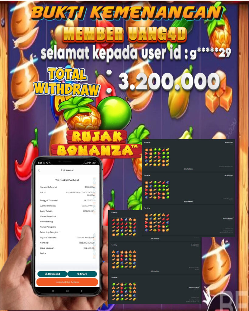 UANG4DJACKPOT SLOT GACOR RUJAK BONANZA 19, MEI, 2025, Jackpot Slot, Kemenangan Slot, Bukti Kemenangan Slot, Kemenangan Slot Pragmatic Play, Menang Slot online, Slot Gacor, Situs Aman Terpercaya, WD Berapapun Pasti DI Bayar Tuntas, Maxwin Slot Online.