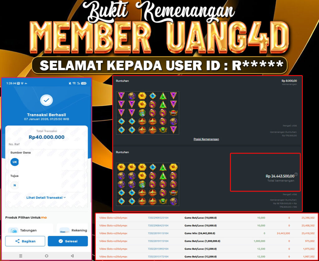 UANG4D –JACKPOT SLOT GATES OF OLYMPUS 1000, 07 JANUARI 2026, Kemenangan Slot, Bukti Kemenangan Slot, Kemenangan Slot Pragmatic Play, Menang Slot online, Slot Gacor, Situs Aman Terpercaya, Withdraw Berapapun Pasti DI Bayar Tuntas, Maxwin Slot Online.