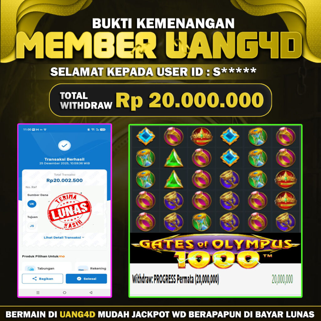 UANG4D JACKPOT SLOT GATES OF OLYMPUS 25 DESEMBER 2025, Kemenangan Slot, Bukti Kemenangan Slot, Kemenangan Slot Pragmatic Play, Menang Slot online, Slot Gacor, Situs Aman Terpercaya, Withdraw Berapapun Pasti DI Bayar Tuntas, Maxwin Slot Online.