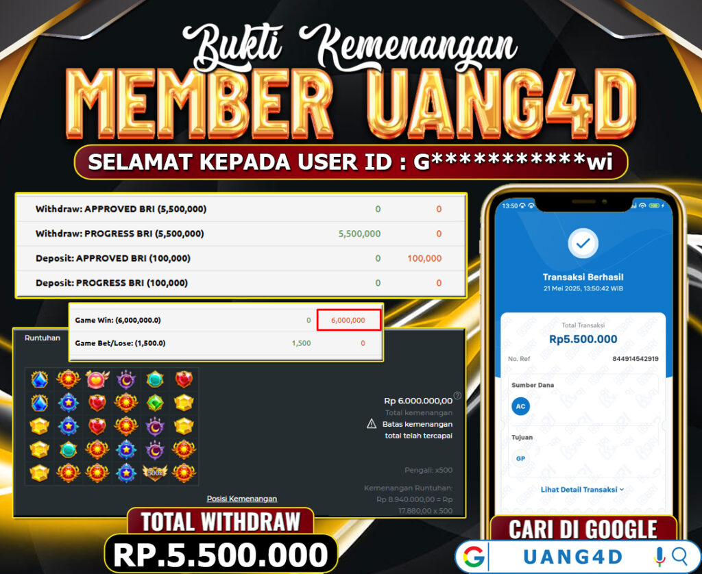 TOTAL KEMENANGAN : Rp.5.500.000,-