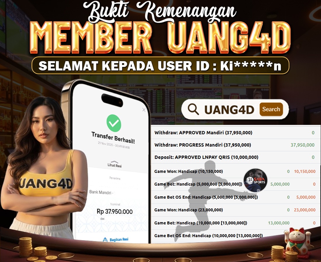 UANG4D dikenal sebagai situs terpercaya yang selalu menghadirkan pengalaman bermain slot online yang aman, fair, dan berlisensi resmi. Di sini, kami tidak hanya sekadar memberikan janji, tapi bukti nyata berupa slip kemenangan yang dapat Anda lihat secara langsung.