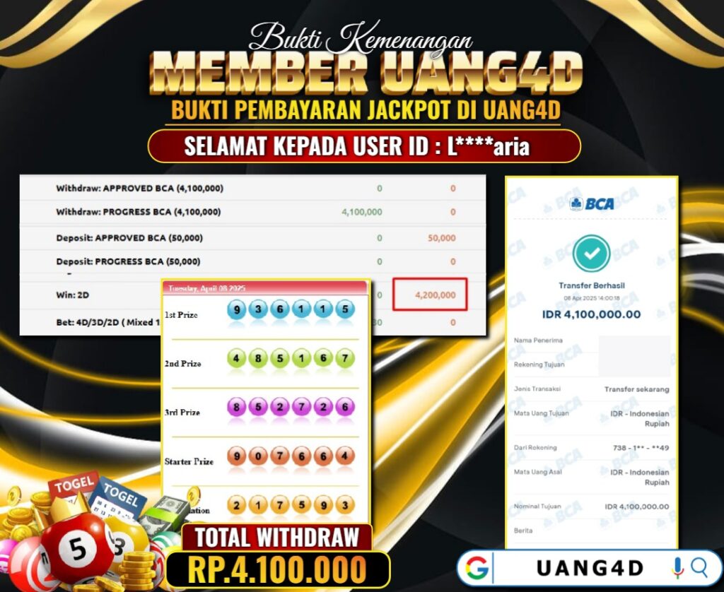 Selamat Kepada Member Yang Berhasil Mendapatkan Jackpot Dipermainan Togel Hari Ini, Berikut Bukti SS Jackpot Member Di Situs UANG4D